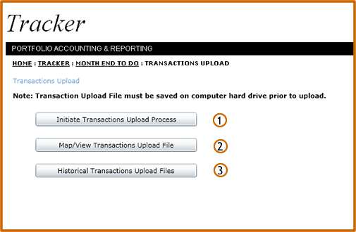 Click the Initiate Transactions Upload Process button to upload transactions from a csv file. |